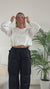 Felpa corta con orlo arricciato e scollo a V - Bianco