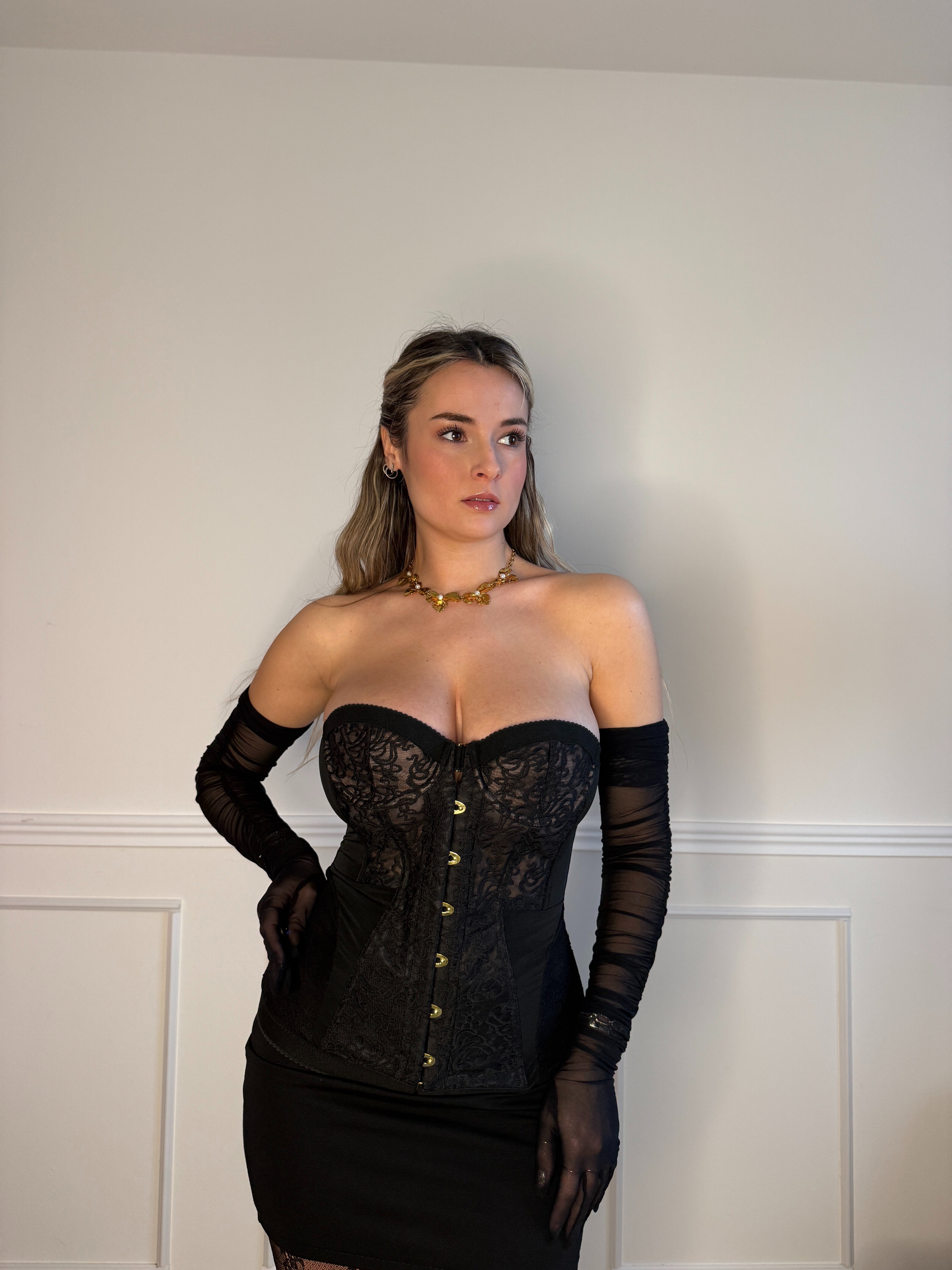 Corsetto strutturato in pizzo stile gotico-vittoriano con lacci sulla schiena.