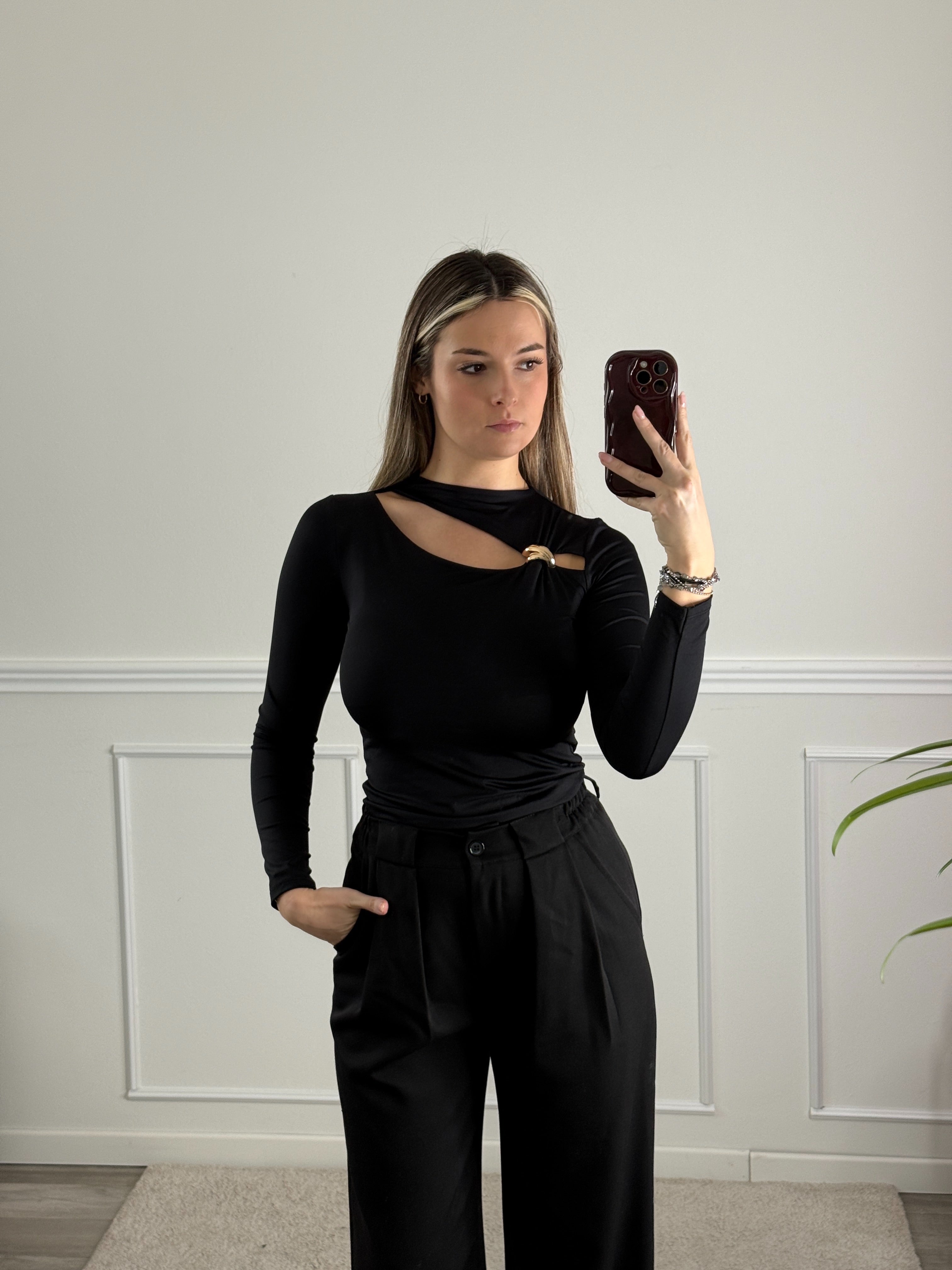 Maglia cut-out a maniche lunghe con morsetto dorato.
