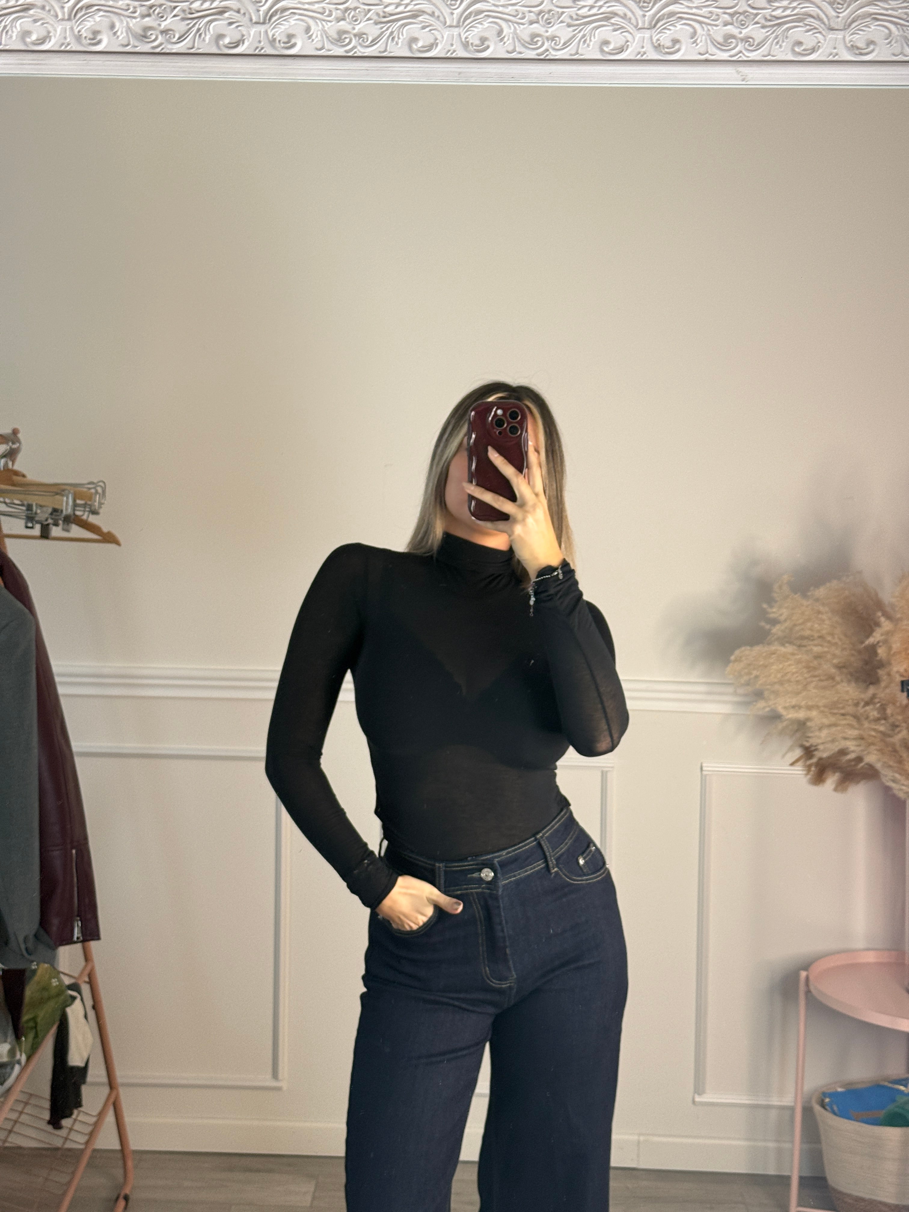 Top in misto cashmere a maniche lunghe con collo alto.
